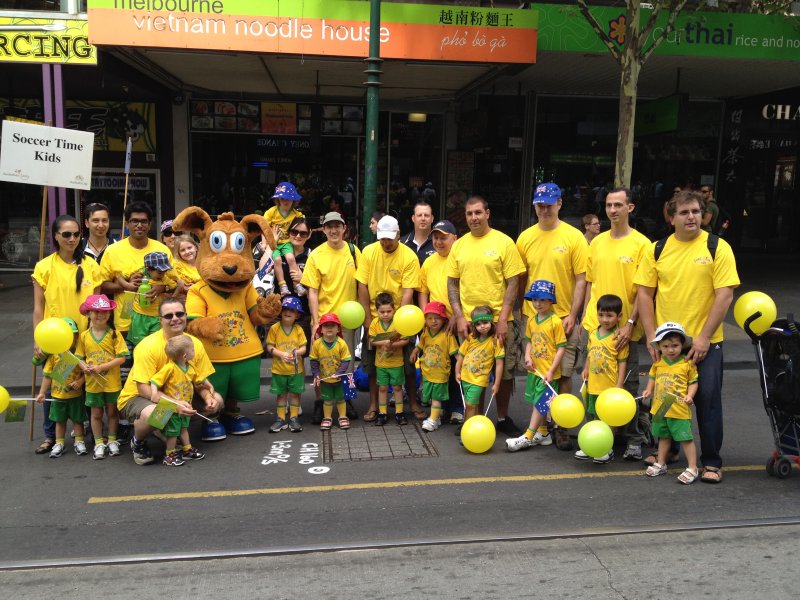 Soccer Time Kids randomly invited 40 members of our program to march in the parade from the corner of Bourke and Swanston St, down Swanston past the Melbourne Town Hall, past Federation Square, over the Yarra River and into the Kings Domain Gardens to our stall. All our little marches received a fantastic show bag full of goodies for there efforts.