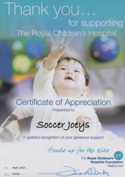 At Soca Time Joeys, we love giving back to the community, this April saw us donate 100 Soccer Balls to the HeartKids Foundation who then distributed them to The Royal Children's Hospital. It was both humbling and rewarding to hear back from the Royal Children’s letting us know that our donation certainly helped cheer up their patients. Placing a call to the Hospital after the balls were delivered a nurse said to Bill Angeloglou that on one of the floors that the Heart Kids are at, ball are all over the place.