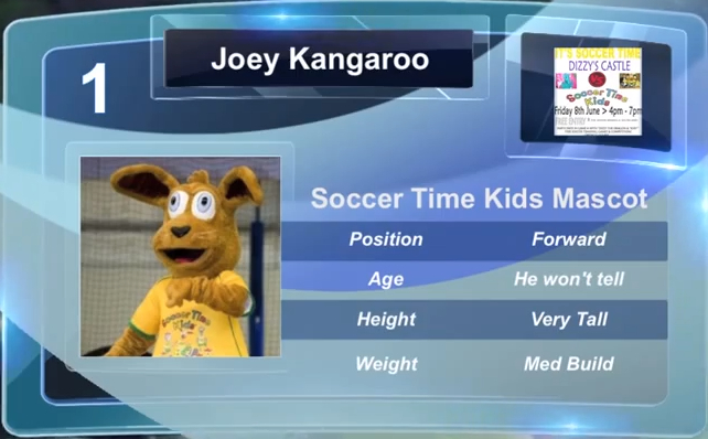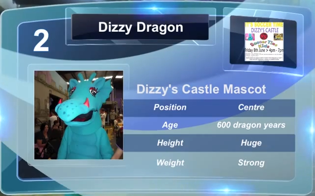 This week JOEY has been in heavy training for his 1v1 match against Dizzy the Dragon from Dizzy's Castle Indoor Play Centre. Soccer Time kids went down for a monthly themed soccer party night at the Castle. The two mascots battled it out on the portable field and the kids played soccer, ran around and enjoyed the play centre, whilst practicing their soccer moves. A great night had by all. The match ended in a 4 - 4 draw.